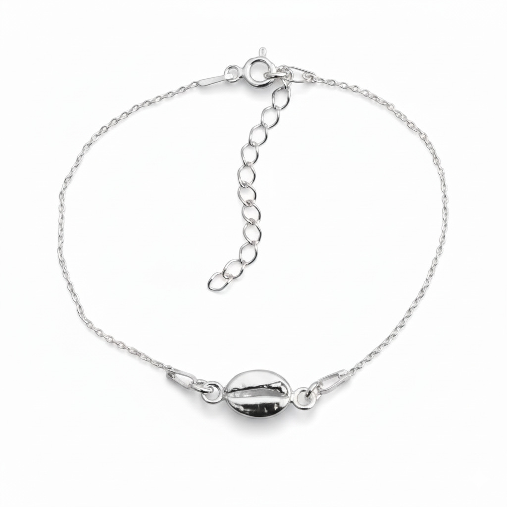 Srebrna bransoletka łańcuszkowa z ziarnem kawy, z dodatkową przedłużką.