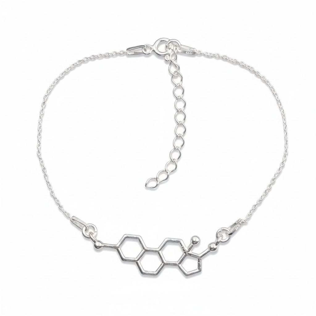 Srebrna bransoletka ze wzorem estradiolu, z dodatkową przedłużką.